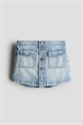 Шорты из мягкого хлопкового денима с пришитым передним слоем с пуговицами спереди. Регулируемая резинка на талии, накладные передние карманы и открытые задние карманы.