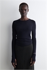 Этот топ с длинными рукавами - изысканный элемент гардероба - выполнен тонкой вязкой из первоклассной мериносовой шерсти, выбранной за ее естественную легкость и непревзойденную мягкость. Он украшен манжетами с отверстиями для больших пальцев и имеет тонкий силуэт, который позволяет носить его многослойно. Узкий кройЭто изделие содержит шерстяное волокно Responsible Wool Standard TE-00047206 (RWS) с ферм, сертифицированных в соответствии с требованиями к благополучию животных и землепользованию Материал: 100% мериносовая шерсть. Без учета отделки / Машинная стирка Длина по спинке для размера S составляет 61 см / Модель носит размер S