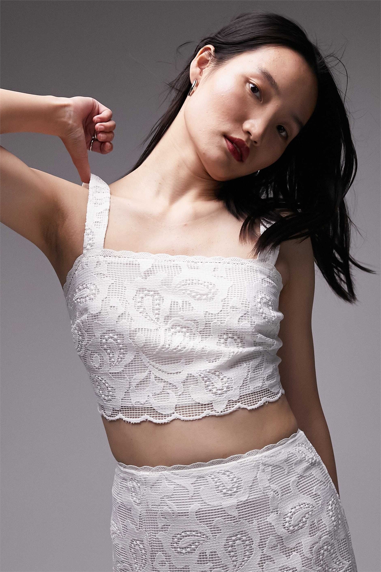 Короткий топ с кружевными вставками co-ord