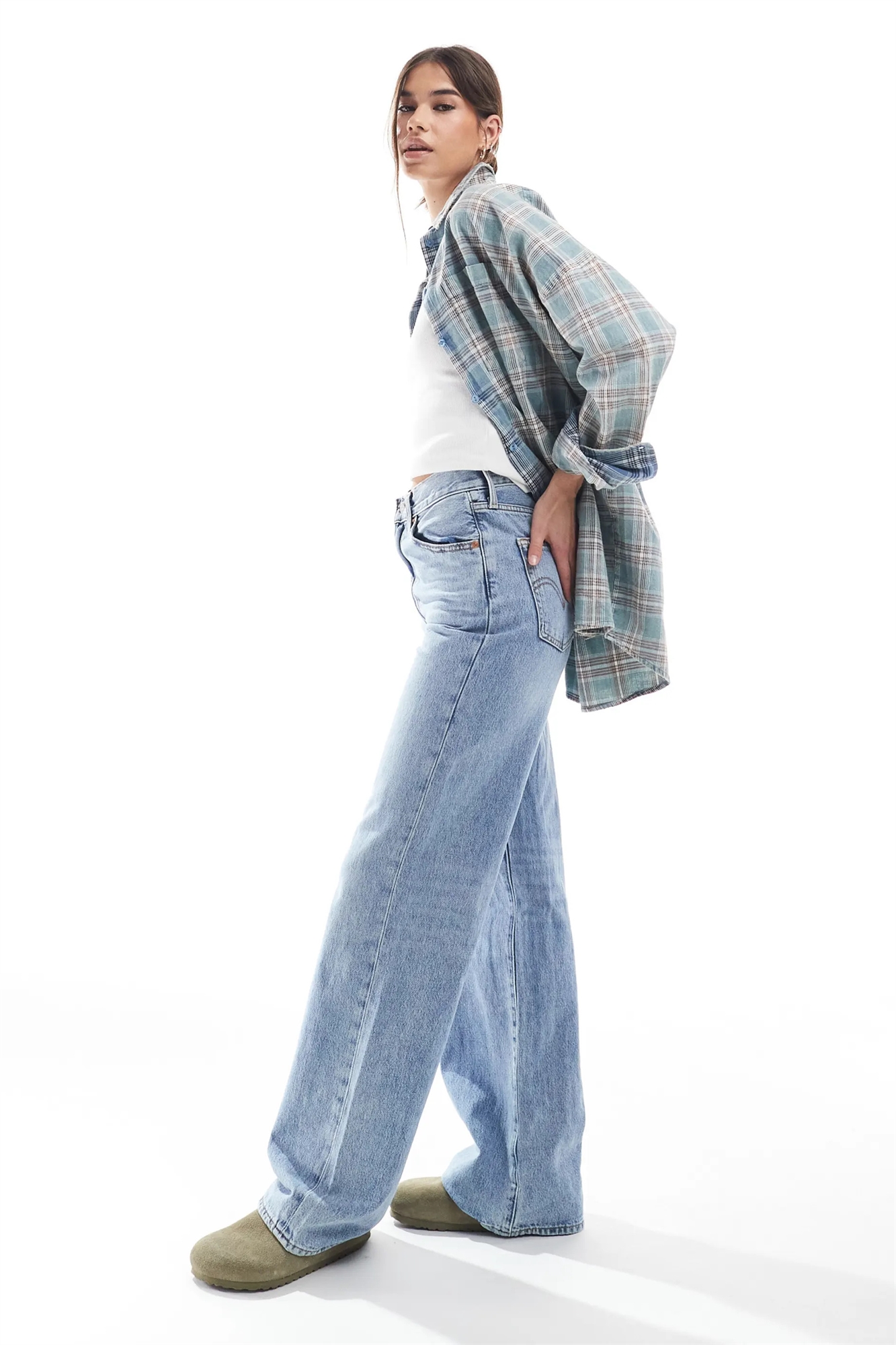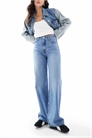 Джинсы с широкими брючинами и высоким талием