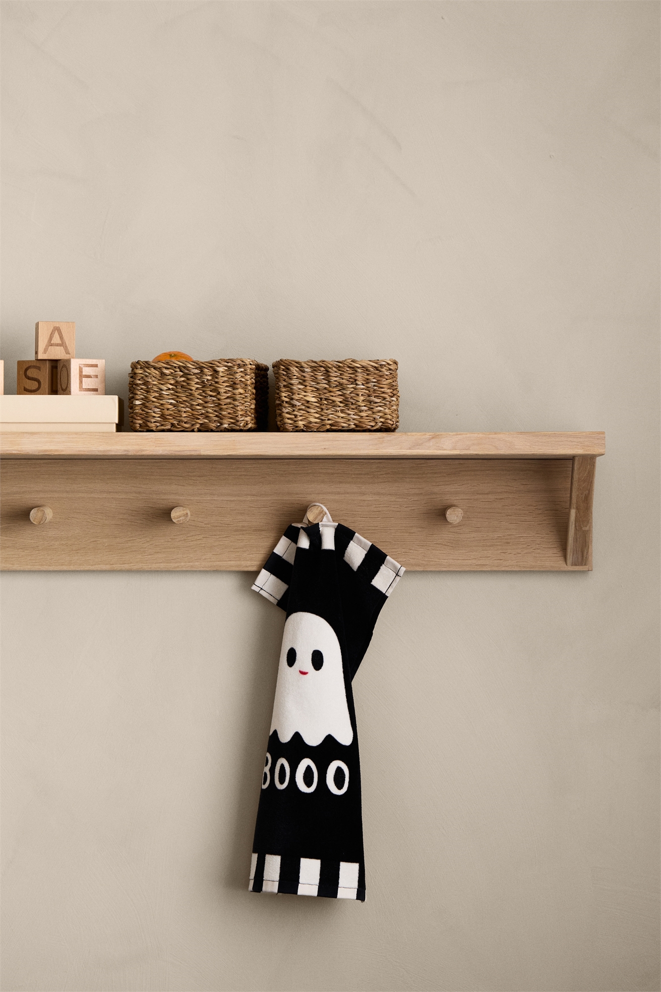 Полотенце для гостей из мягкой хлопковой махры с велюровой лицевой стороной с веселым принтом и вешалкой на одной короткой стороне.