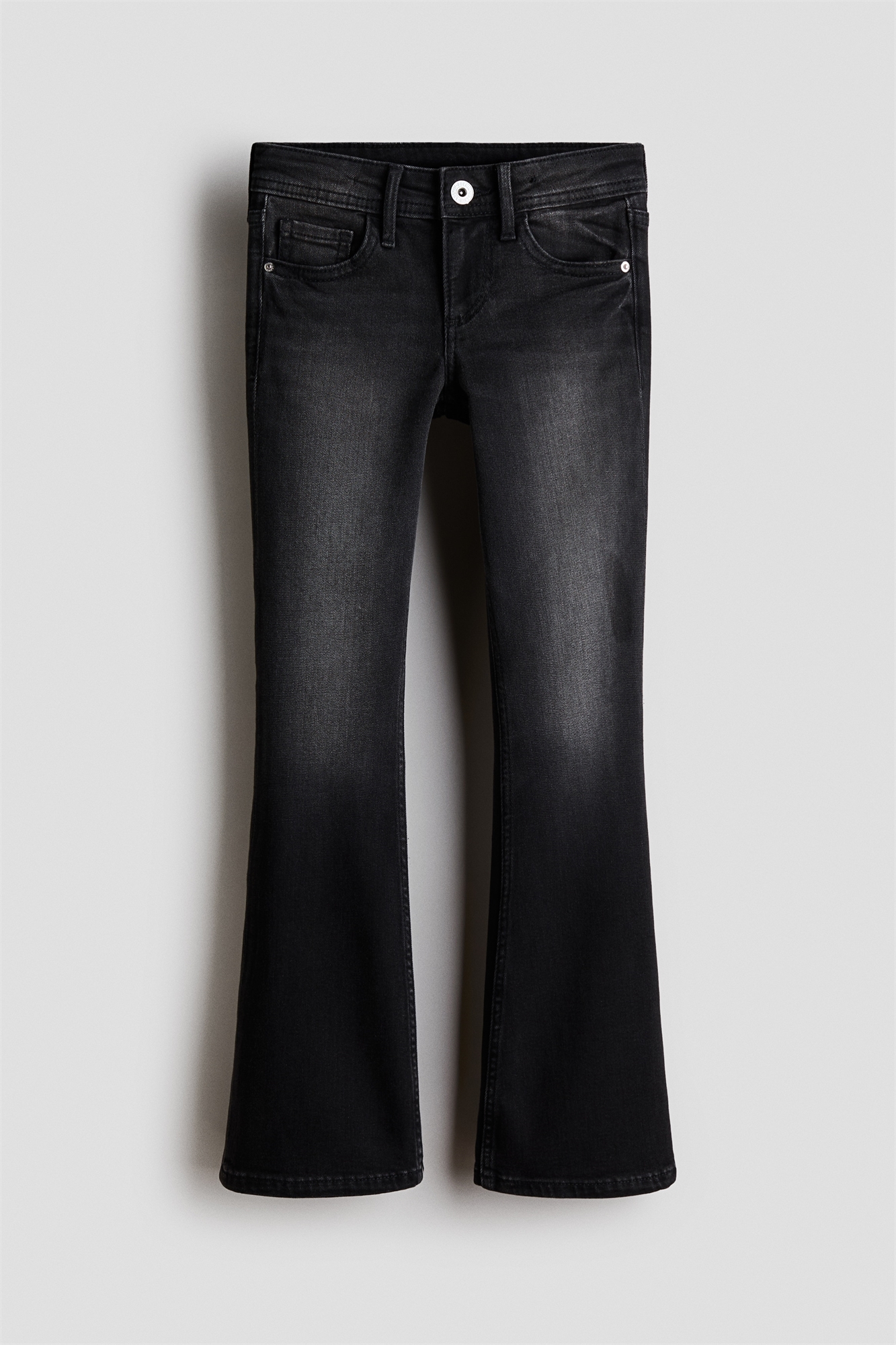 Джинсы из эластичного денима с зауженной посадкой по бедрам и ляжкам и расклешенными ногами. Заниженная талия с регулируемой резинкой и ширинка на молнии с пуговицей. Передние и задние карманы.