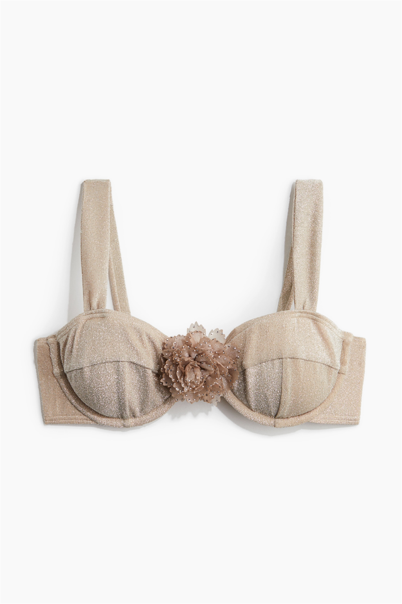 Бикини-топ South Beach Metallic Underwired с цветочной отделкой выполнен из гладкой, блестящей металлической ткани с нежным цветочным акцентом для придания элегантности. Заниженная посадка обеспечивает плотное прилегание и повышенный комфорт, добавляя привлекательный штрих к вашему пляжному гардеробу. Сочетайте его с соответствующими трусами-бикини с рюшами и цветочными деталями, чтобы создать шикарный, согласованный образ для пляжного клуба.