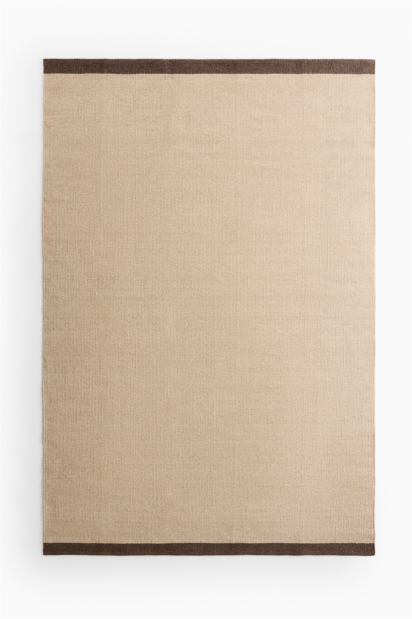 Большой ковер плоского плетения из смеси шерсти. Вдоль коротких концов проходит кайма более темного, контрастного оттенка. Обратите внимание, что новые ковры иногда имеют слабый запах, который можно легко устранить, проветрив и пропылесосив.