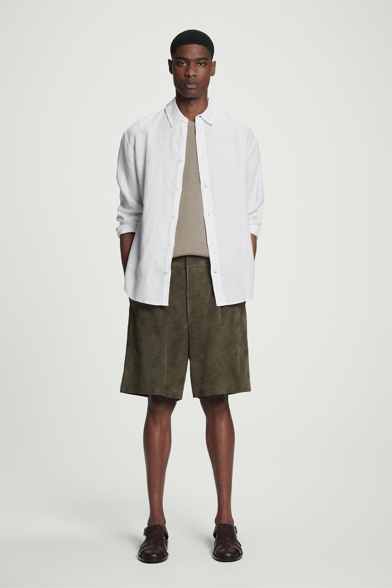 Каждый сезон команда мужской моды COS предлагает продуманный подход к архетипам гардероба - как, например, эти шорты. Отсылающие к классическому пошиву, они имеют чистый пояс, петли для ремня и косые карманы, которые тщательно прострочены. Они изготовлены из высококачественной эластичной замши насыщенного цвета хаки. Свободный крой Застежка на крючок и молнию COS поддерживает ответственное производство через Leather Working Group Материал: 100% замша. Подкладка: 100% вискоза. Без учета отделки / Чистка специалистом Внутренняя длина ноги размера EU 48 составляет 22 см / Модель носит размер EU 48