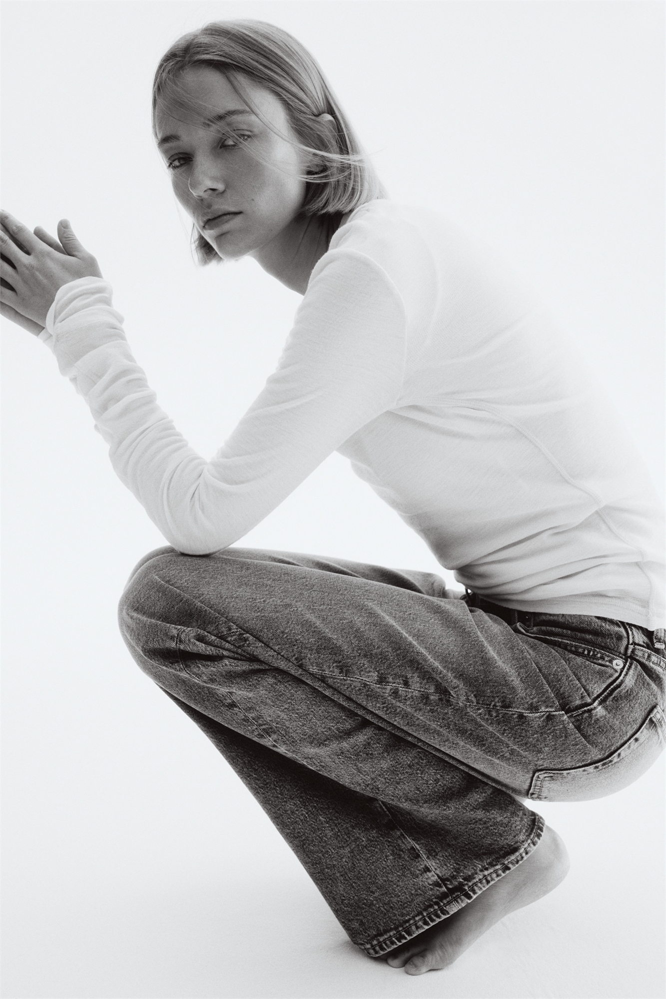 Джинсы с 5 карманами из хлопкового денима с легким стретчем для комфорта. Джинсы Bootcut с зауженной посадкой от талии до бедра, расклешенные от колена до подола. Высокая талия с ширинкой на молнии и пуговице. Удлиненная длина, созданная для того, чтобы ниспадать по ноге с эффектом укладки. Определяющая форма из сезона в сезон.