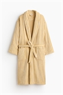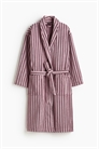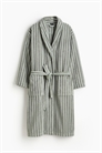 Халат в полоску из мягкой хлопковой махры с шалевым воротником, передними карманами и съемным поясом-завязкой на талии. 400 GSM.