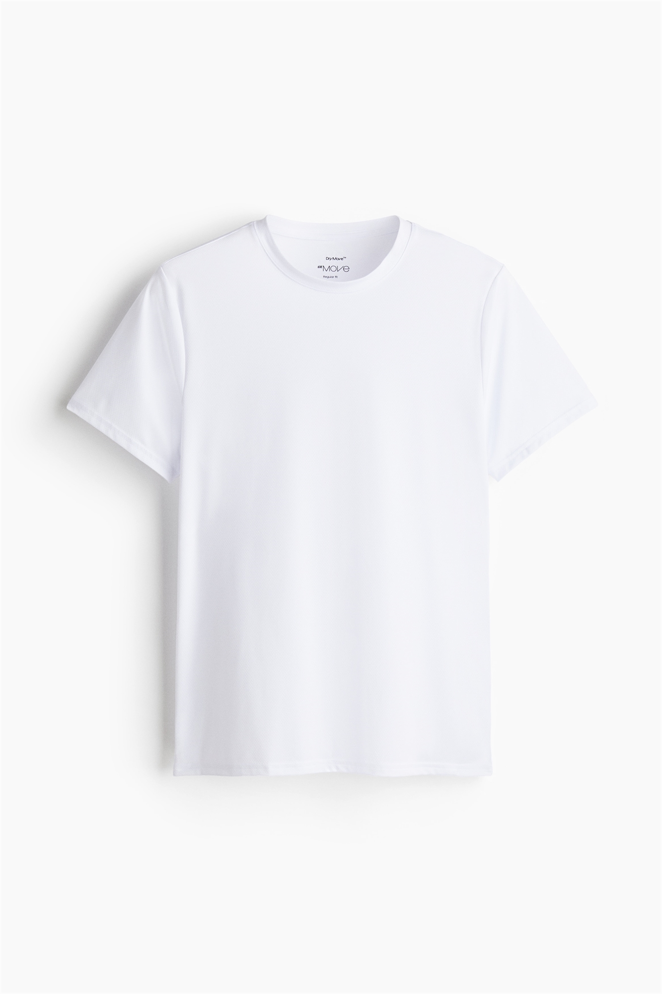 Спортивный топ из функциональной ткани DryMove™, которая отводит влагу от кожи, обеспечивая комфортную сухость во время движения. Модель обычного кроя с круглым вырезом, короткими рукавами и прямым покроем.