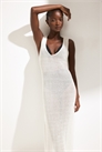 Пляжное платье длиной до щиколоток, без рукавов, из свободного трикотажа, с глубоким V-образным вырезом и высоким разрезом по бокам.