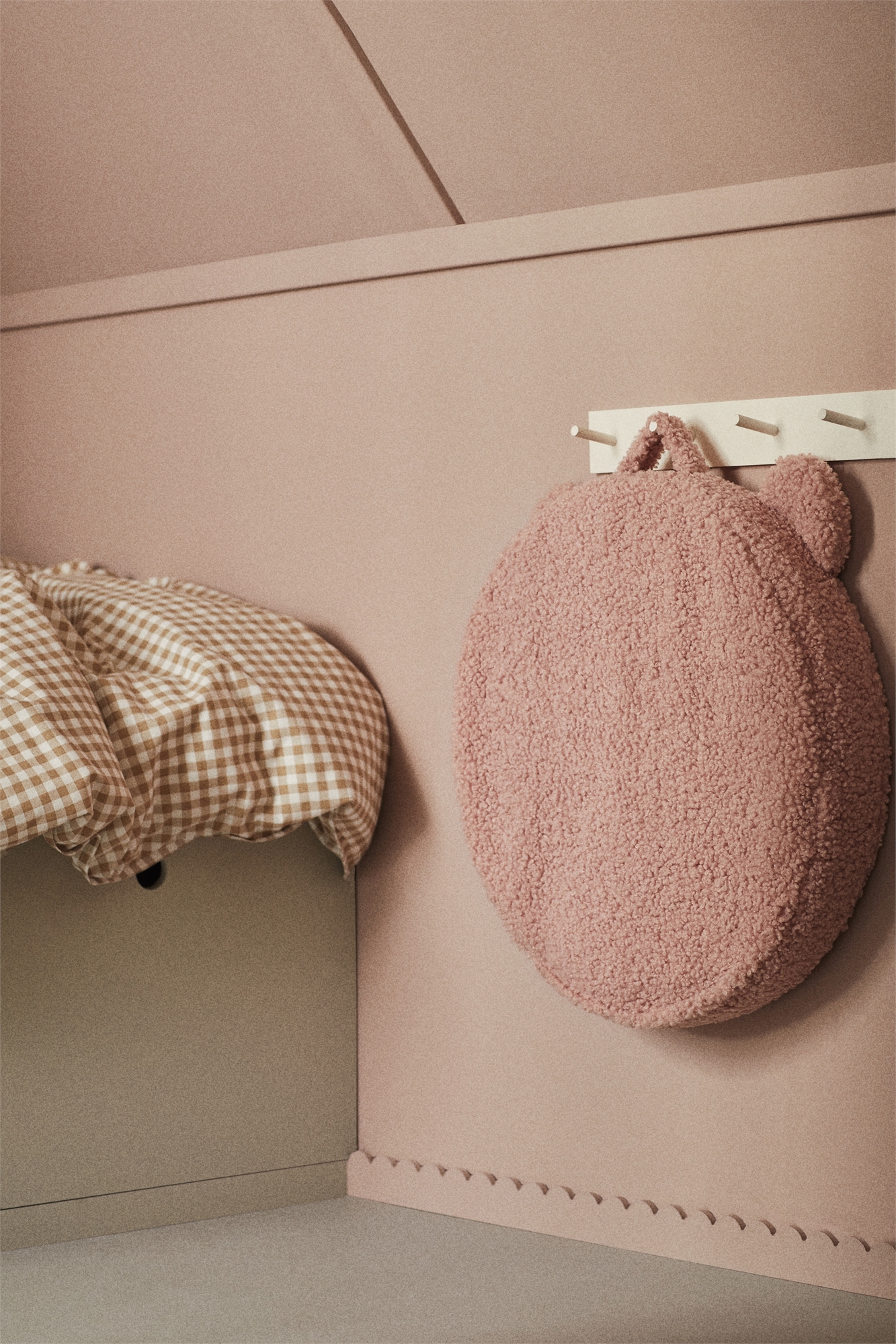 Круглая напольная подушка из мягкого пушистого тедди с ручкой и аппликациями на ушах, придающими ей очаровательный вид плюшевого мишки. Положите ее на пол, чтобы удобно расположиться во время игры, или используйте ее как отправную точку для создания уютного уголка в комнате вашего ребенка.