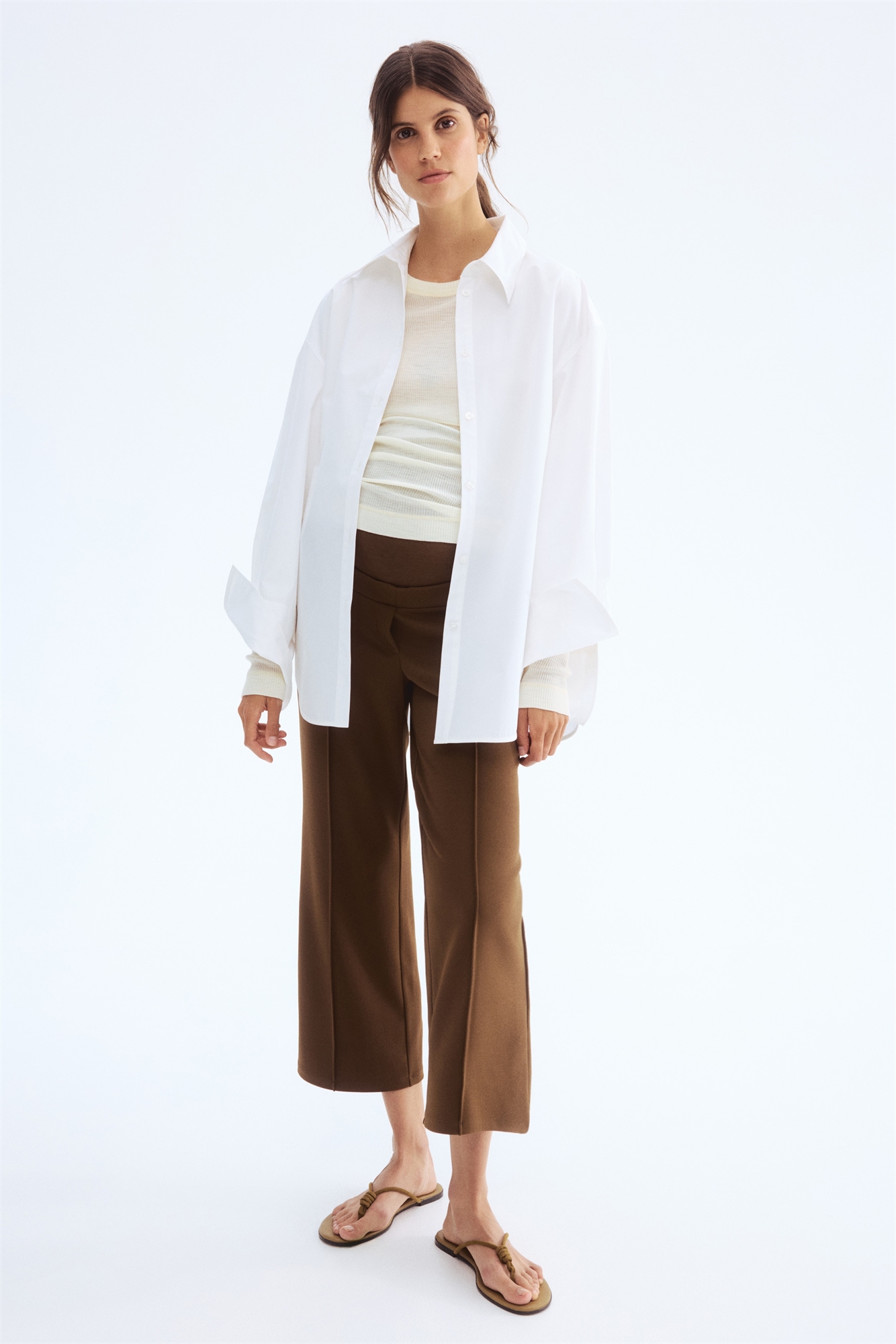 Брюки длиной до щиколотки из плотного трикотажа интерлок с фальшивой ширинкой и прямыми ногами с застроченными складками спереди для приталенного вида. Эластичная резинка сзади на поясе и широкая панель из джерси на талии для лучшей посадки на животе.