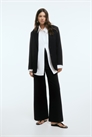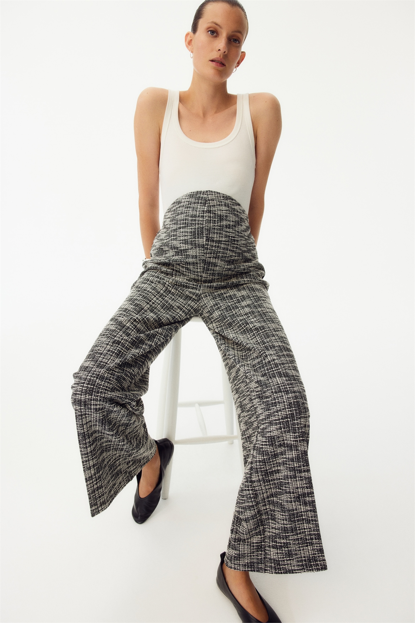 Брюки из фактурного джерси с высокой талией, скрытой эластичной резинкой в верхней части и широкими штанинами со складками спереди и сзади.