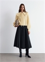 Этот кардиган связан из мягкой смеси альпаки и мериносовой шерсти с матовой, ребристой фактурой. Прямой облегающий силуэт, длинные рукава-баллон и воротник "Питер Пэн" с оборкой, застегивающийся на завязки. Спереди застегивается на трикотажные пуговицы. 38% RAS Alpaca TE-00047206 38% RWS Wool TE-00047206 Длина кардигана: 52 см / 20,5” (размер S)