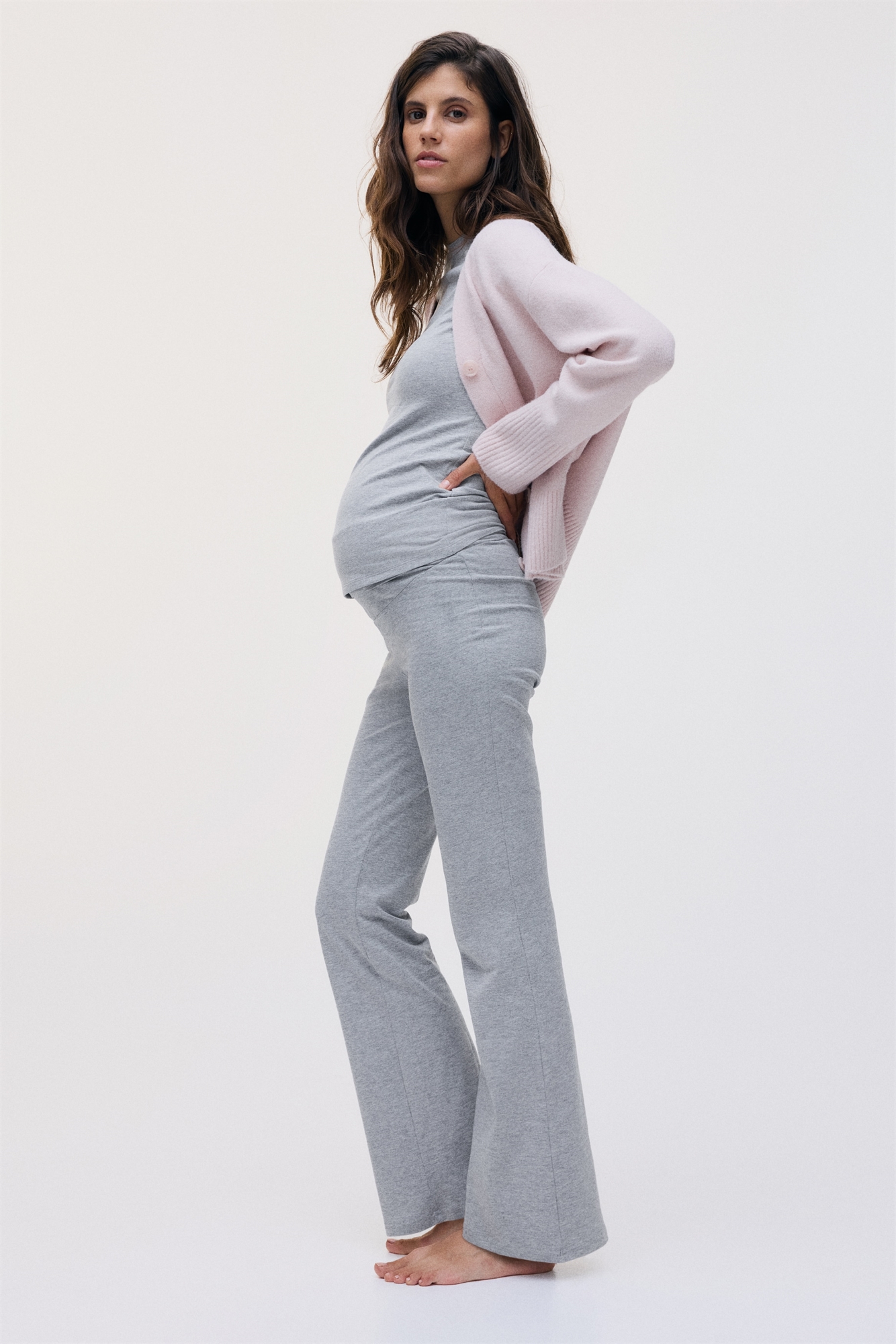 Брюки из мягкого джерси из смеси хлопка с прямыми ногами, расклешенными к подолу. Широкий отложной пояс обеспечивает комфортную посадку как во время, так и после беременности.