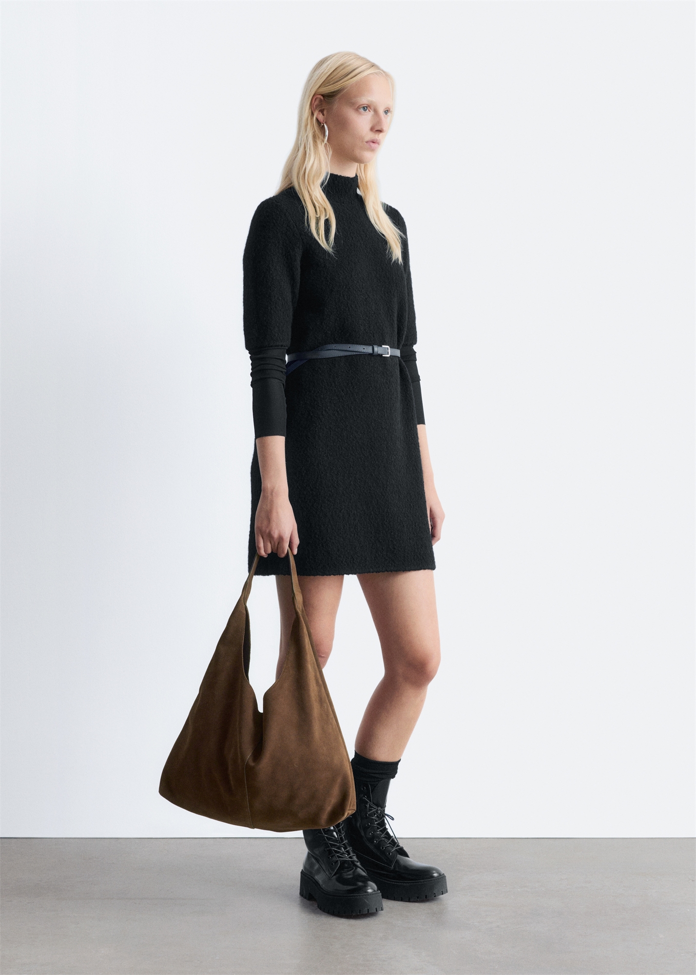 Это мини-платье создано из шерстяного трикотажа bouclé с фактурной отделкой. Прямой силуэт, горловина и короткие рукава. 53% шерсть RWS TE-00047206 Длина платья: 82 см / 32,7” (размер S)