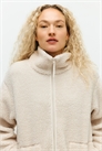 Куртка из мягкого тедди с высоким воротником, застежкой на молнию спереди и накладными боковыми карманами. Без отделки.