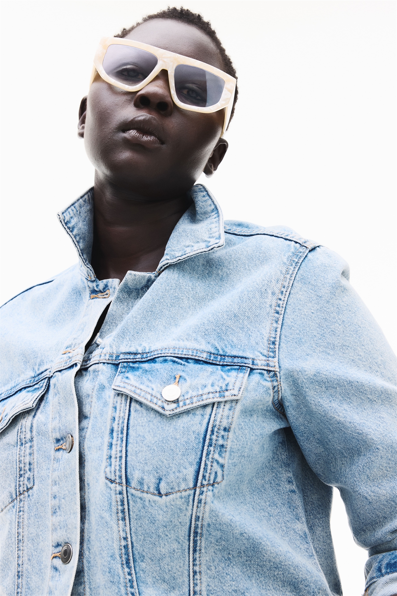 Очки со смелой оправой и прозрачными линзами из пластика. Линзы имеют специальное покрытие, отсеивающее синий свет от цифровых экранов.