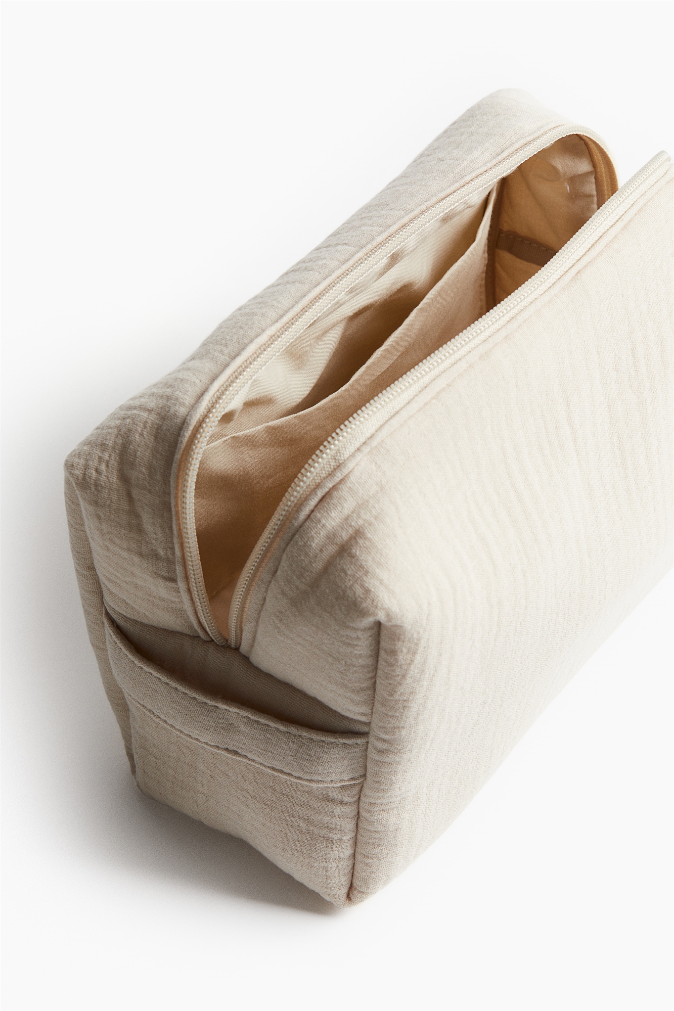 Пеленальный мешок из мягкого хлопкового муслина с легкой подкладкой, застежкой-молнией сверху, ручкой с одной короткой стороны и открытым внутренним отделением, в котором легко найти все необходимое во время пеленания. Хлопковая подкладка. Ширина 10 см. Высота 15 см. Длина 24 см.