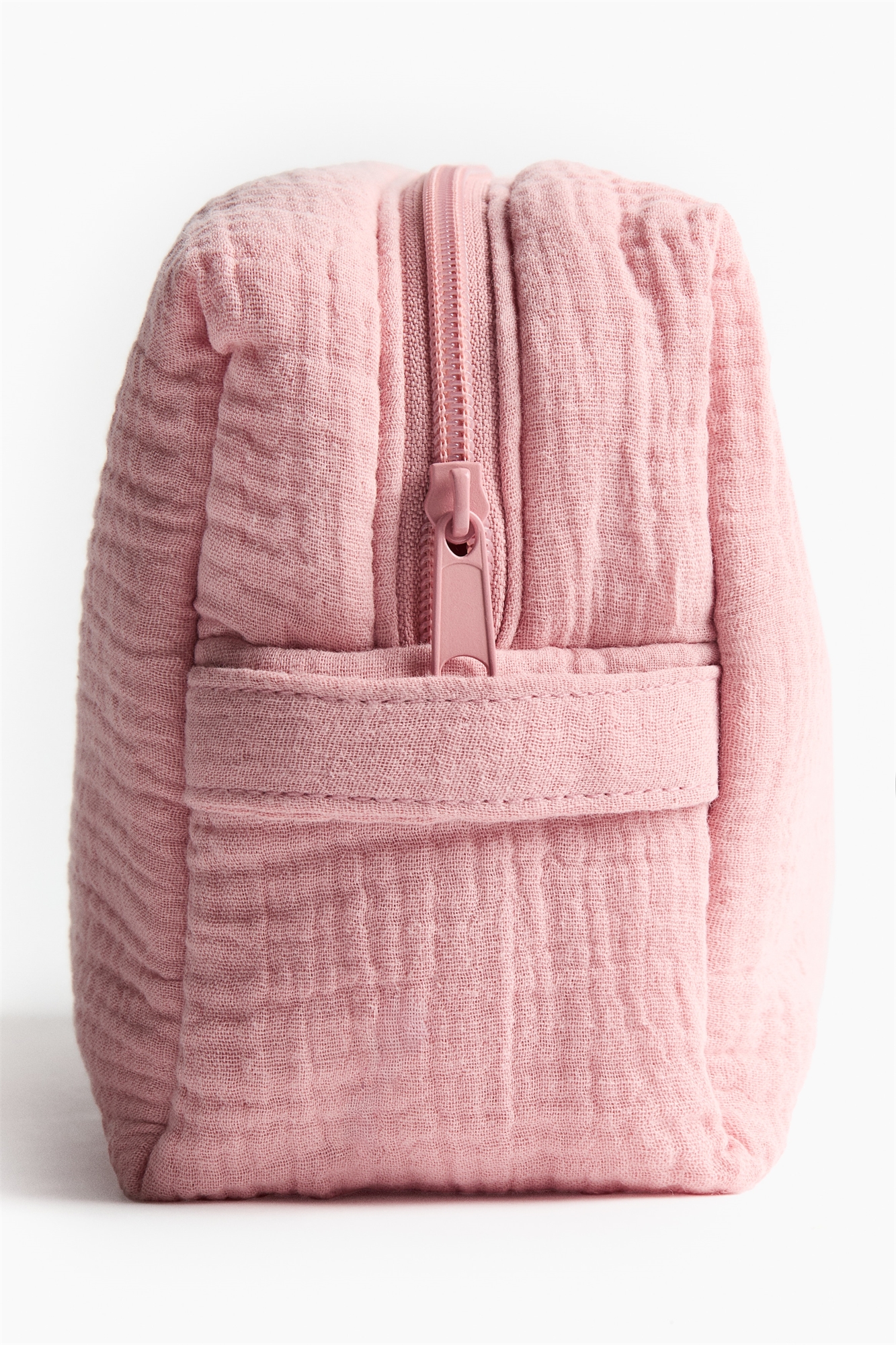Пеленальный мешок из мягкого хлопкового муслина с легкой подкладкой, застежкой-молнией сверху, ручкой с одной короткой стороны и открытым внутренним отделением, в котором легко найти все необходимое во время пеленания. Хлопковая подкладка. Ширина 10 см. Высота 15 см. Длина 24 см.