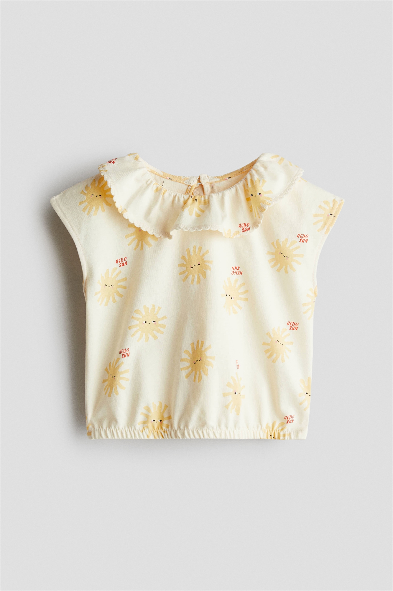 Топ из мягкого хлопкового джерси с принтом, круглым вырезом, воротником с гребешком и отверстием для ключа на спине. Короткие рукава и эластичная резинка по подолу.