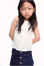 Жилет-топ из ребристого пуантельского джерси из хлопка с круглым вырезом и застежкой на пуговицы. Вырез и проймы отделаны кружевом, а подол обработан оверлоком.