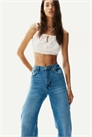 Джинсы с 5 карманами из жесткого хлопкового денима, который сначала кажется упругим, но затем смягчается и ослабевает по мере носки. Широкие штанины с обычной посадкой от талии до бедер и широким кроем от бедра до подола. Завышенная талия с ширинкой на молнии и пуговице. Удлиненная длина, созданная для того, чтобы ниспадать по ноге с эффектом укладки. Вдохновленные 70-ми, созданные для сегодняшнего дня.