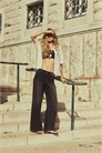 Свободные брюки из мягкого денима, изготовленного из смеси хлопка и лиоцелла. Эластичный пояс с завязками, передние и задние карманы, широкие штанины.