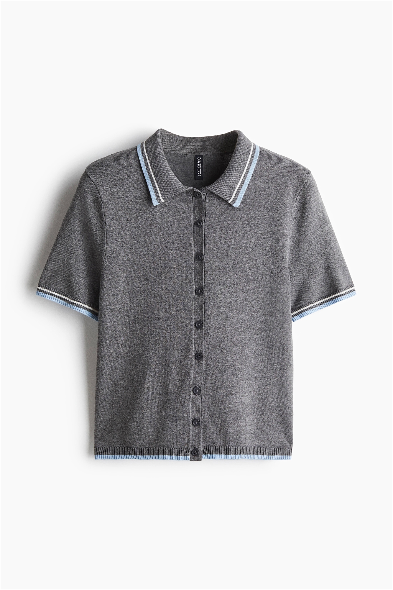 Короткий приталенный кардиган из мягкого тонкого трикотажа с воротником, пуговицами спереди и короткими рукавами. Ребристая отделка на манжетах и подоле.