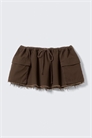 Мини-юбка свободного кроя с заниженной талией. Изготовленная из прочной хлопковой саржи, она имеет мягкий эластичный пояс с функциональным шнурком, карманы с клапанами и необработанный край подола.