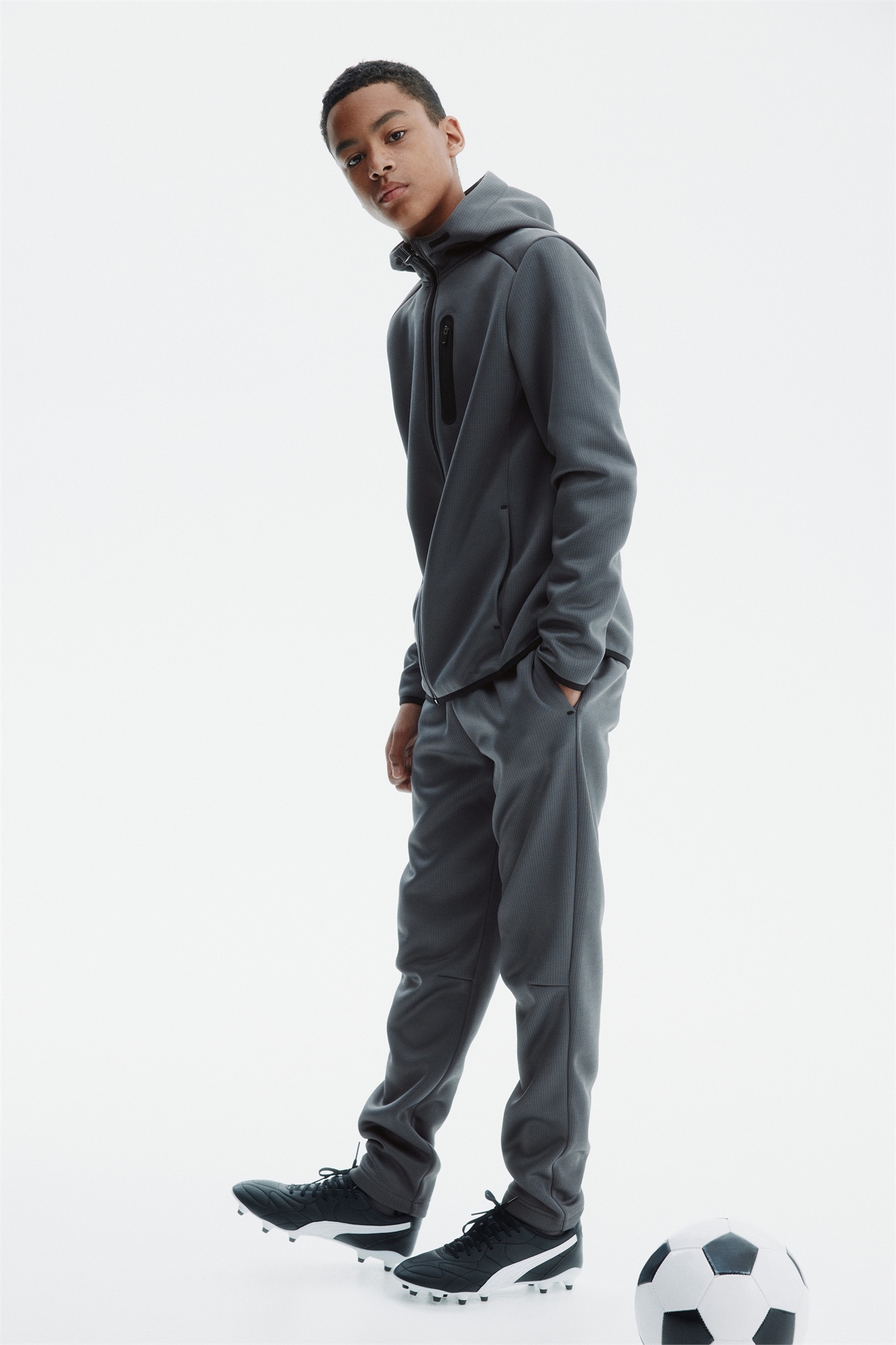 Спортивные джоггеры из функционального трикотажа с мягким начесом внутри, с технологией ThermoMove™, которая сохраняет тепло при понижении температуры. Регулярный крой с эластичной утягивающейся талией и незаметными боковыми карманами.