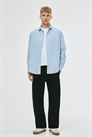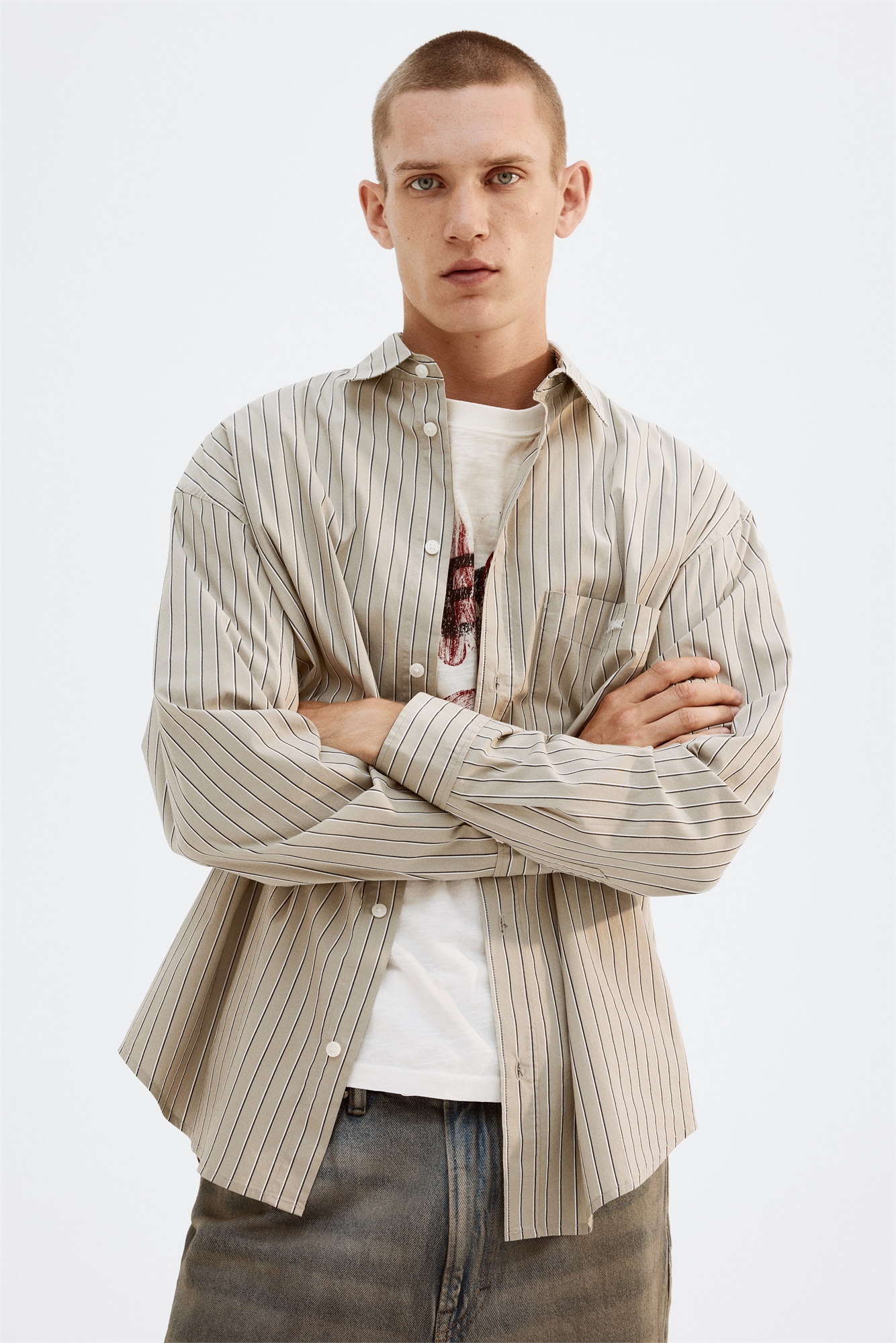 Рубашка из хлопкового поплина с отложным воротником, классической передней частью, передом и открытым нагрудным карманом. Длинные рукава с манжетами на пуговицах и рукавной планкой с пуговицей, а также мягко закругленный подол. Свободный крой для пышного, но не чрезмерно большого силуэта.
