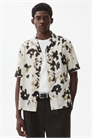 Рубашка с короткими рукавами из воздушного полотна с набивным рисунком. Курортный воротник, французская передняя часть и прямой подол. Регулярный крой для комфортной носки и классического силуэта.
