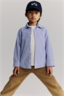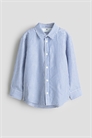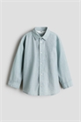 Рубашка из воздушного хлопкового полотна с отложным воротником, застежкой на пуговицы спереди и длинными рукавами с манжетами на пуговицах. Аккуратный закругленный подол, слегка удлиненный сзади.
