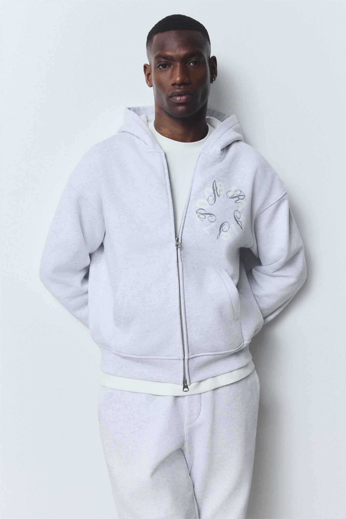 Толстовка на молнии в боксерском стиле из плотной толстовочной ткани из смеси хлопка. Капюшон с подкладкой из джерси, двусторонняя застежка-молния спереди, спущенные плечи и длинные рукава. Передние карманы и широкая ребристая отделка на манжетах и подоле. Свободный крой для пышного, но не чрезмерно большого силуэта.