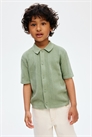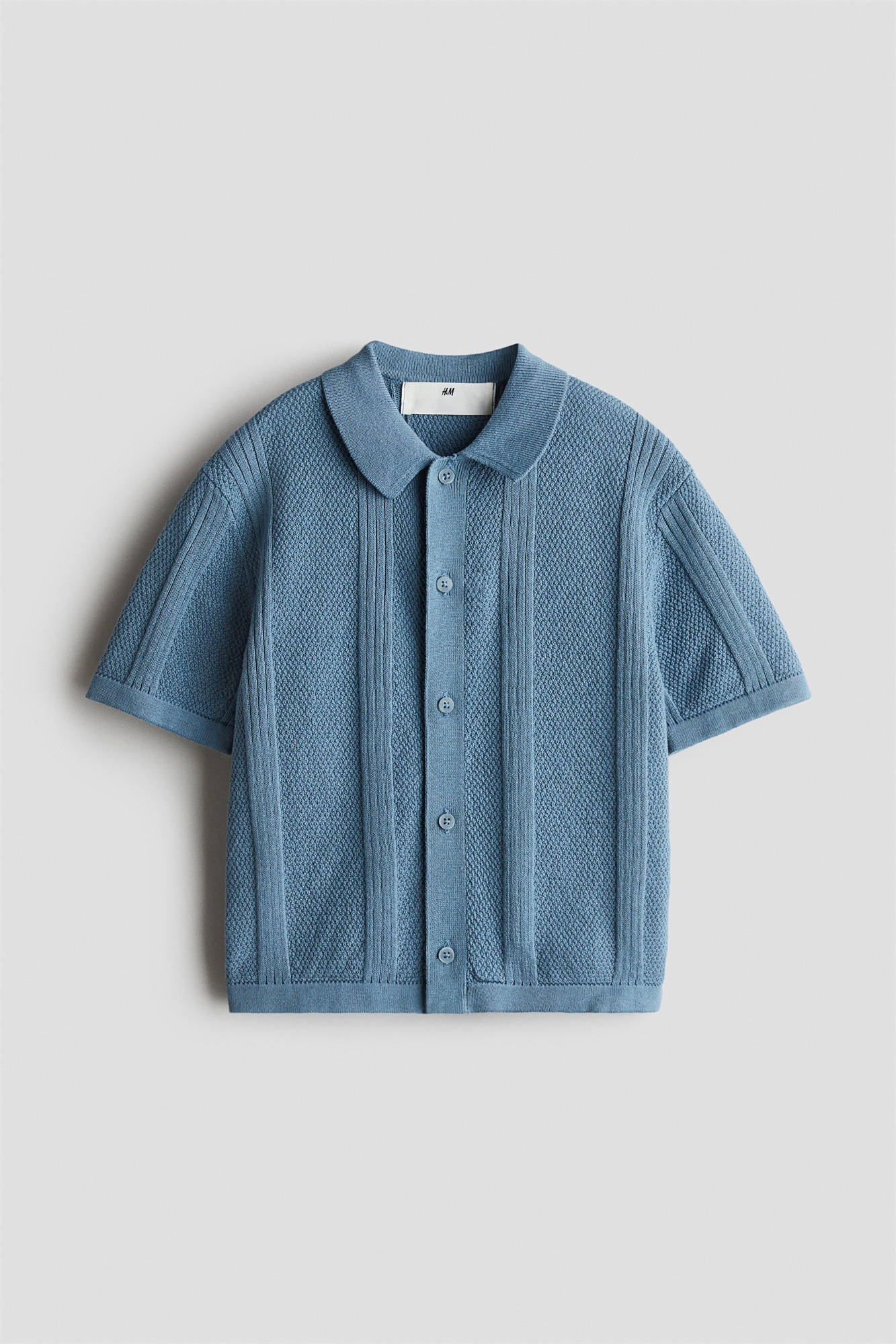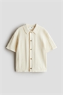 Рубашка свободного покроя из мягкого фактурного хлопка. Отложной воротник из тонкого трикотажа, пуговицы спереди и короткие рукава. Планка на пуговицах, манжеты и подол из тонкой трикотажной ткани.