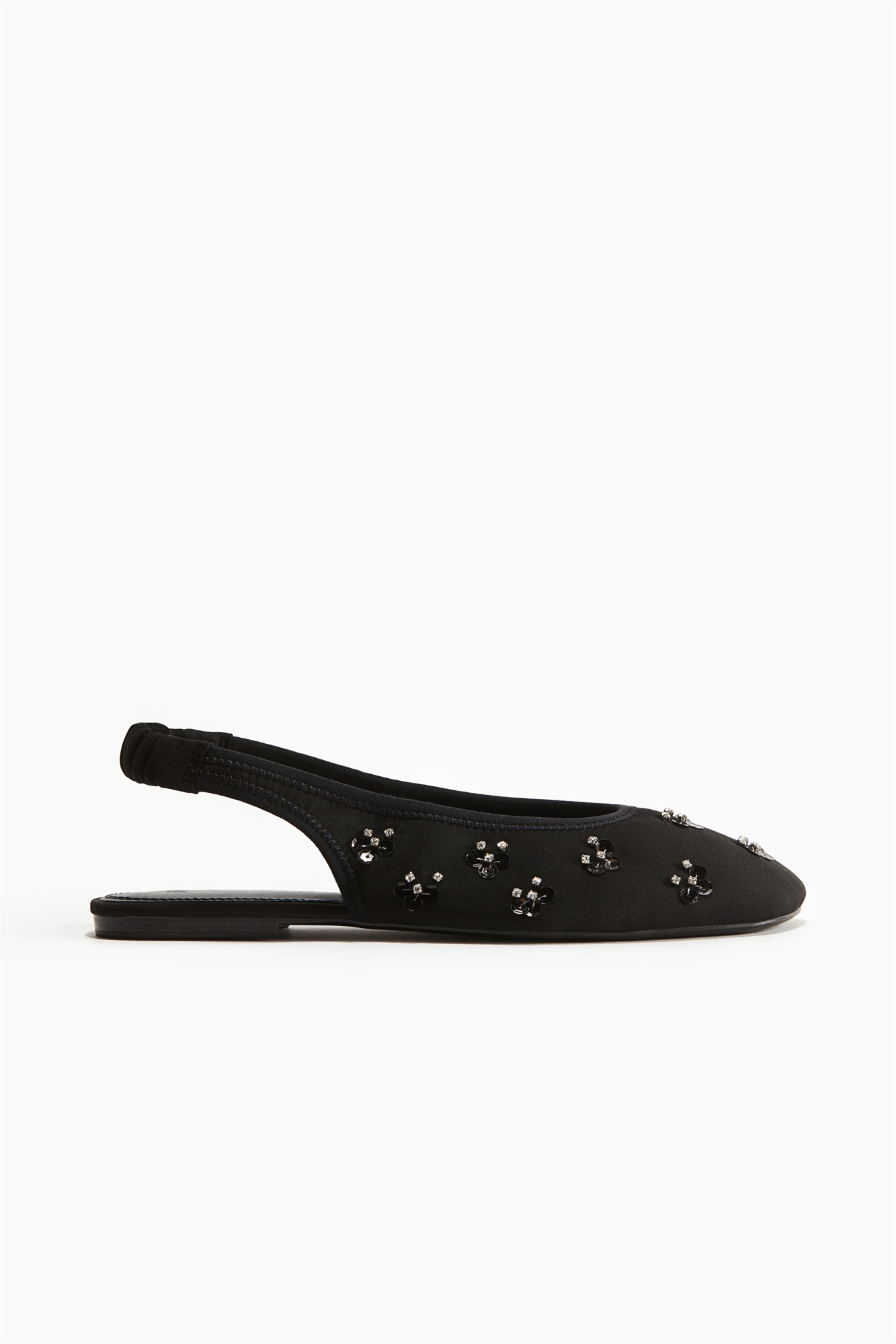 Босоножки из джерси, украшенные гроздьями пайеток и страз, образующих сверкающий узор. Угловатые мыски и ремешок на пятке с эластичной вставкой сзади. Подкладка из джерси.