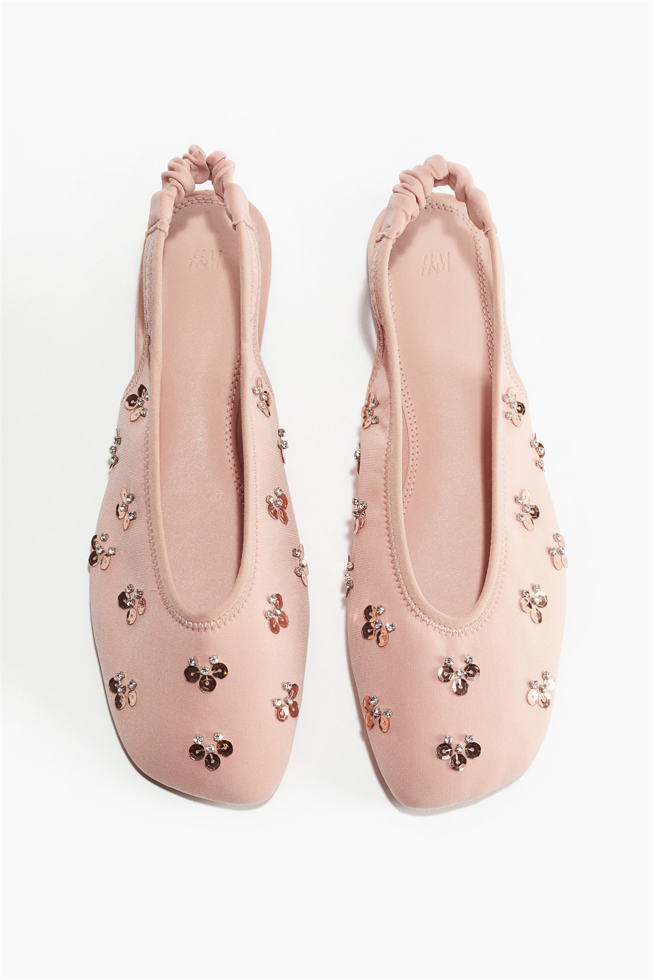 Босоножки из джерси, украшенные гроздьями пайеток и страз, образующих сверкающий узор. Угловатые мыски и ремешок на пятке с эластичной вставкой сзади. Подкладка из джерси.