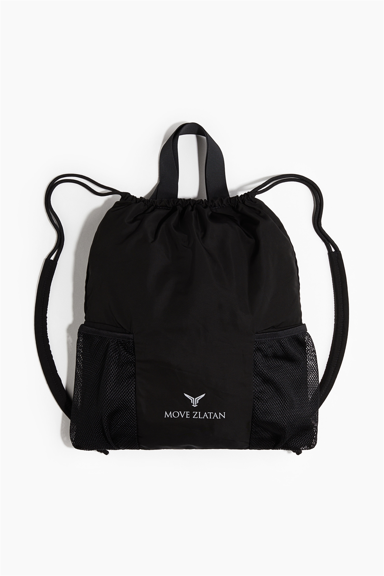 Спортивная сумка из тканого материала с ручкой и шнурком сверху и плечевыми ремнями, чтобы ее можно было носить как рюкзак. Два внешних отделения из сетки по бокам с местом для бутылки с водой и внутренний карман.