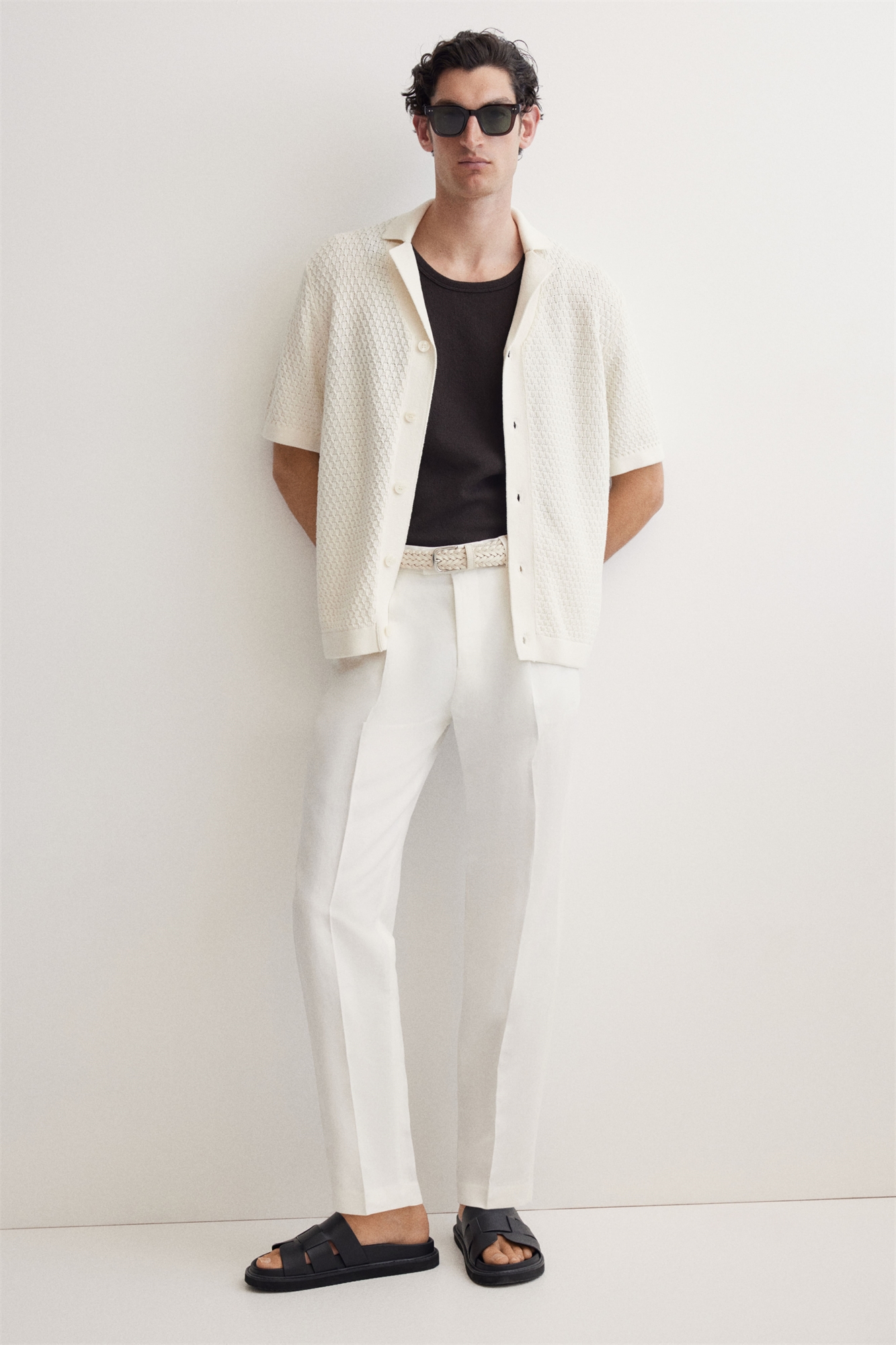 Рубашка с короткими рукавами из фактурного трикотажа с курортным воротником, пуговицами спереди и прямым подолом. Регулярный крой для комфортной носки и классического силуэта.