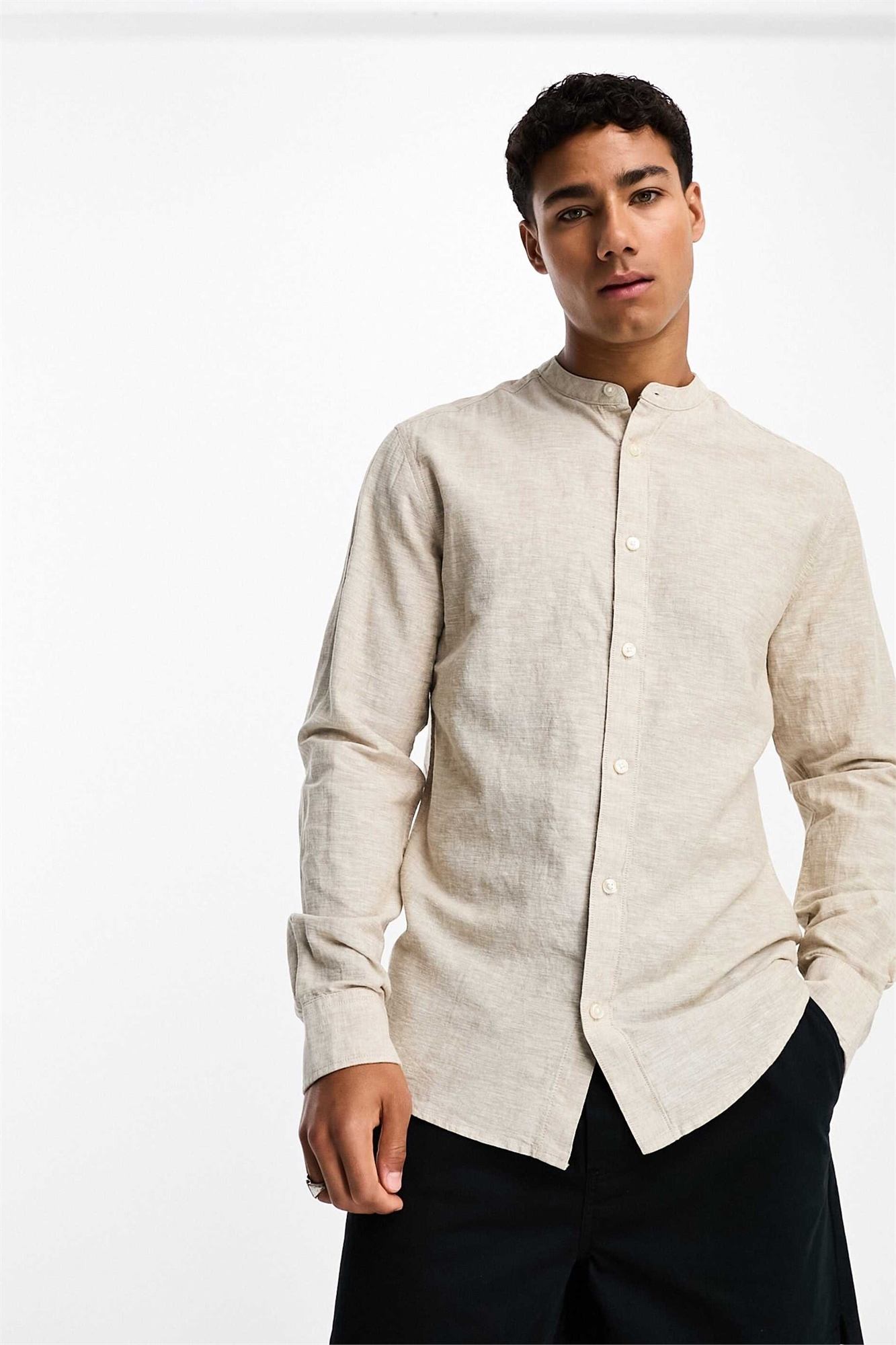 Рубашка с воротником-«бабушкиным» из смешанного льна