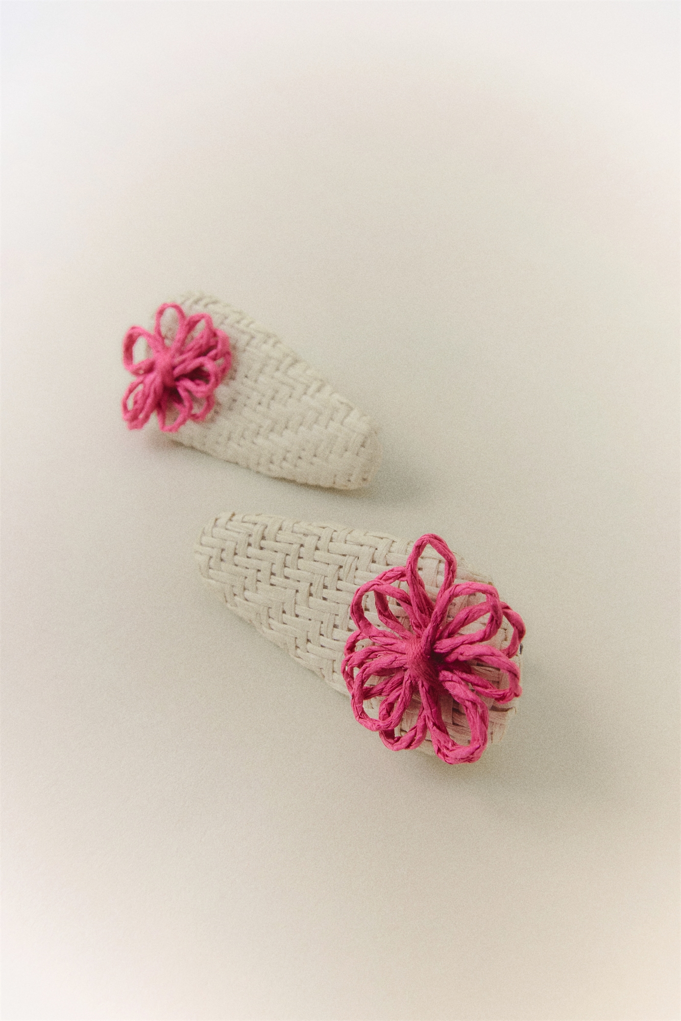 Металлические заколки для волос с украшениями из плетеной бумажной соломки.