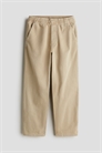 Джоггеры из мягкой хлопковой саржи. Свободный крой по бедрам и ляжкам, слегка зауженные ноги. Эластичный пояс со скрытым шнурком, фальшивая ширинка, диагональные боковые карманы и задние карманы.