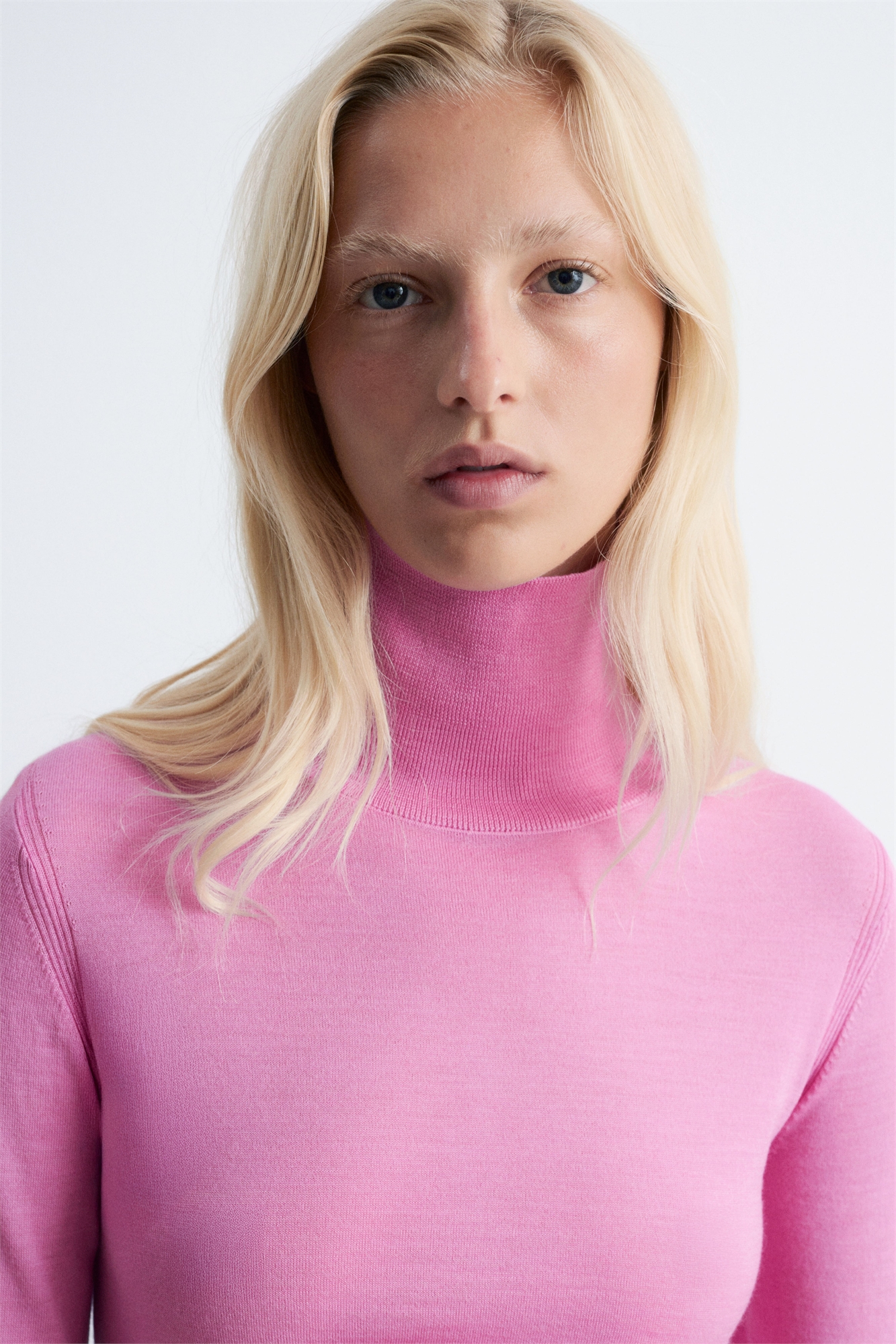 Водолазка тонкой вязки из 100% шерсти с мягким, легким натяжением, облегающего силуэта. Она имеет ребристый воротник-поло с тонкой отстрочкой сзади и длинные приталенные рукава. 100% шерсть RWS TE-00047206 Длина водолазки: 60,5 см / 23,8” (размер S)
