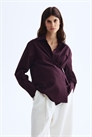 Рубашка из хлопкового полотна с воротником и застежкой на пуговицы. Спереди ее можно застегнуть асимметрично, чтобы создать эффект мягкой драпировки. Кокетка сзади и длинные рукава со втачным рукавом и манжетами на пуговицах.