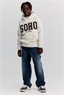 Джинсы Carpenter из хлопкового денима с деталями в виде заплаток. Свободный крой по бедрам и ляжкам и опущенная промежность. Регулируемая резинка на талии, ширинка на молнии с пуговицей, карман для монет, диагональные боковые карманы и открытые задние карманы. Маленький накладной карман на одной штанине и петля для молотка на другой.