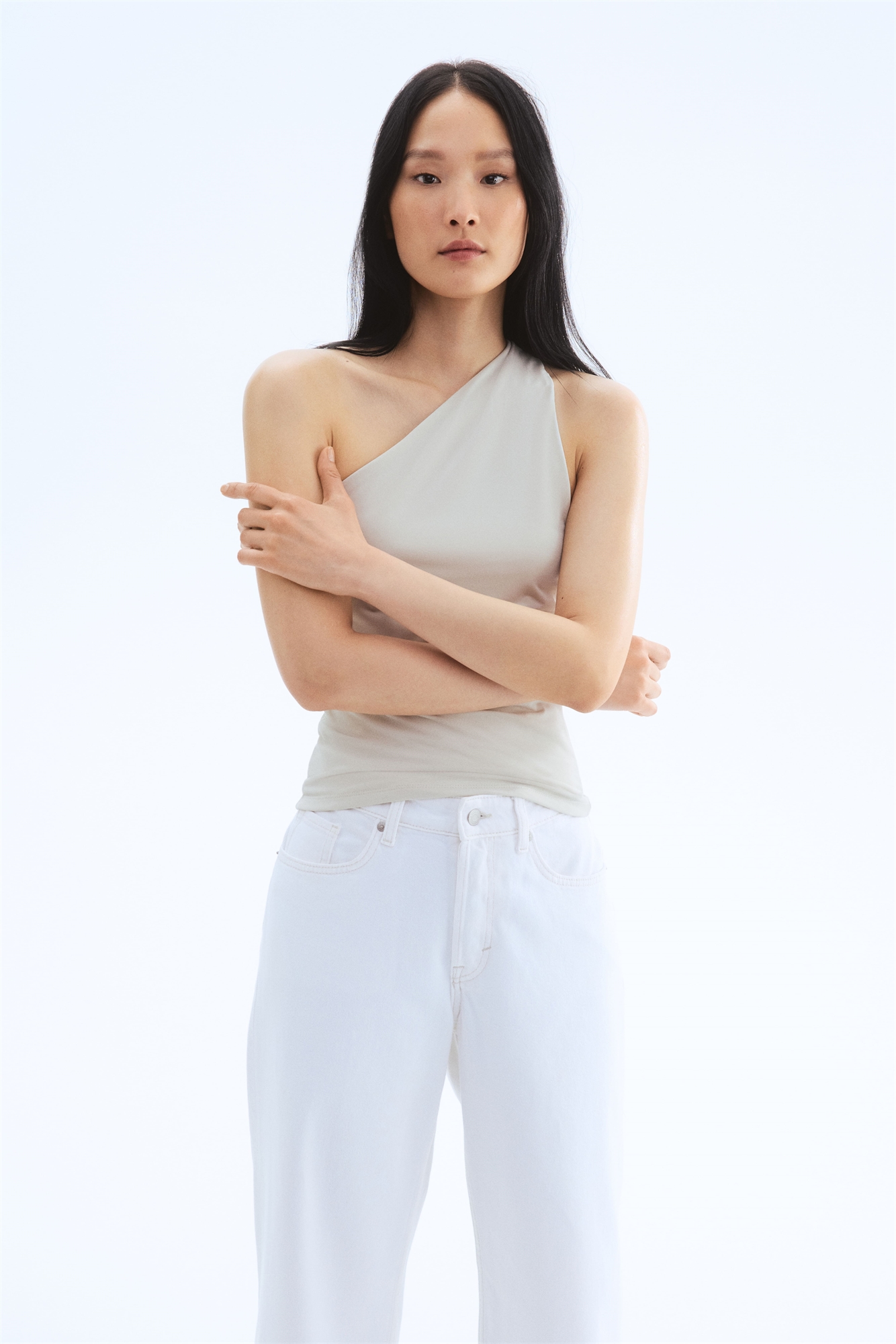 Облегающий топ на одно плечо из крепового джерси с асимметричным вырезом и одной широкой бретелью с узкой диагональной резинкой сзади. Частично на подкладке.