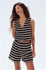 Приталенный жилет из фактурного джерси с V-образным вырезом и аккуратными пуговицами спереди.