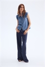 Блузка из легкого лиоцеллового денима с воротником с оборкой, пуговицами спереди и рукавами-воланами.