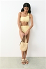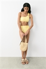 Трусы-бикини на подкладке с высокой талией и сборками по боковым швам для создания эффекта драпировки. Вырез сзади.