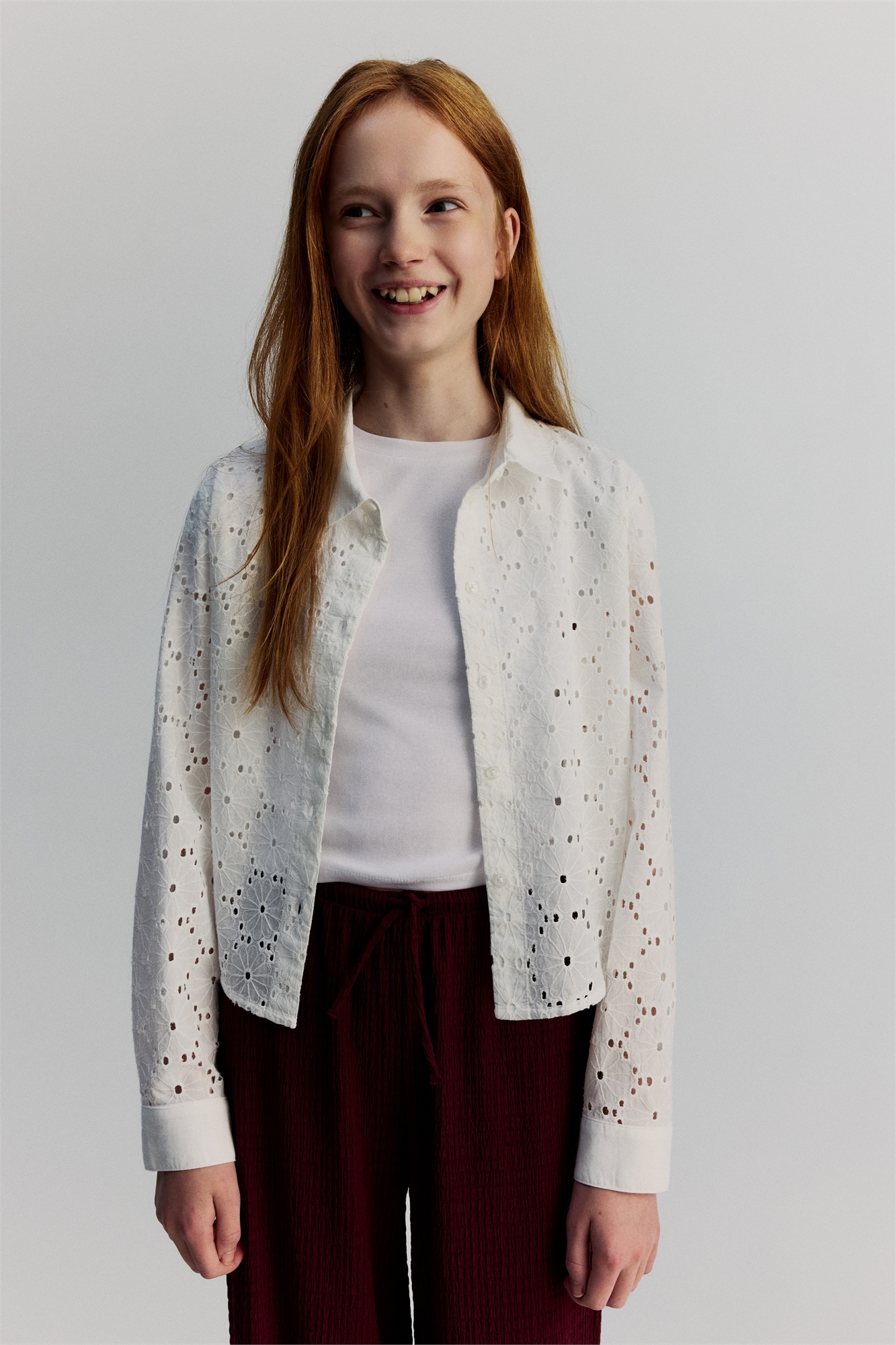Свободная рубашка из мягкого хлопкового полотна. Отложной воротник, застежка на пуговицы спереди и длинные рукава с манжетами на пуговицах.